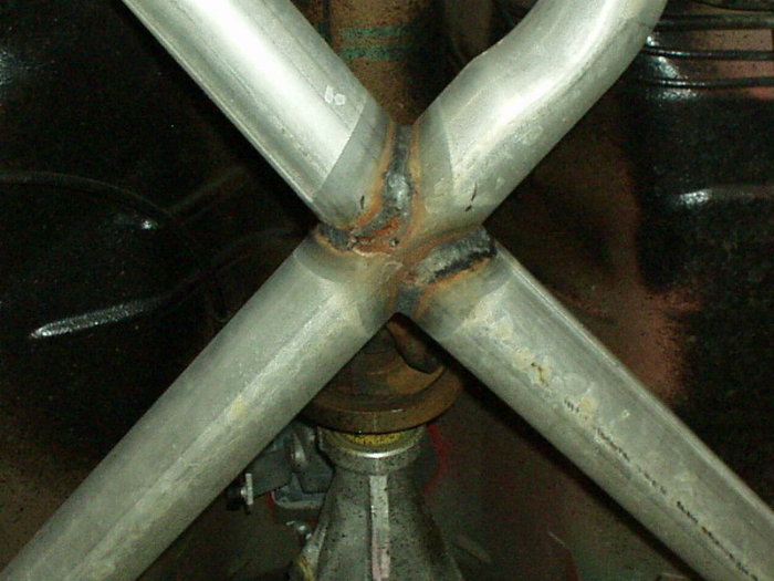 There is no denying that this is an X shaped pipe. It just doesn't belong in an exhaust system. (PS - you forgot to mount the rear O2 sensors)